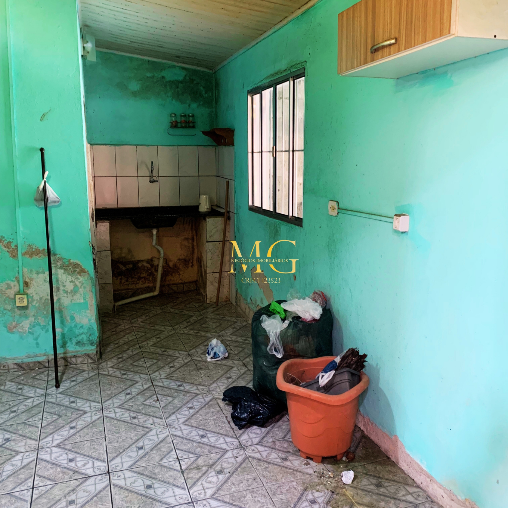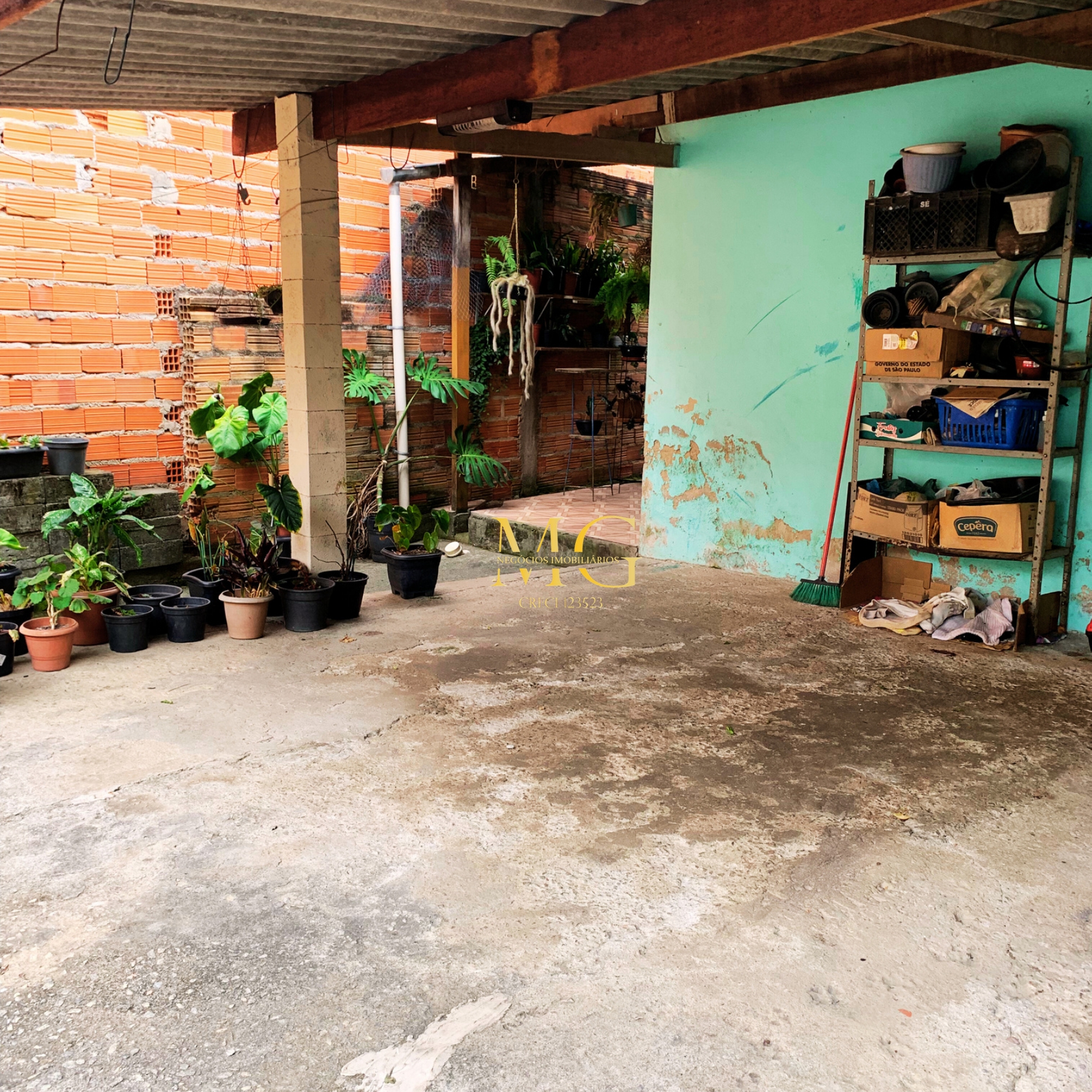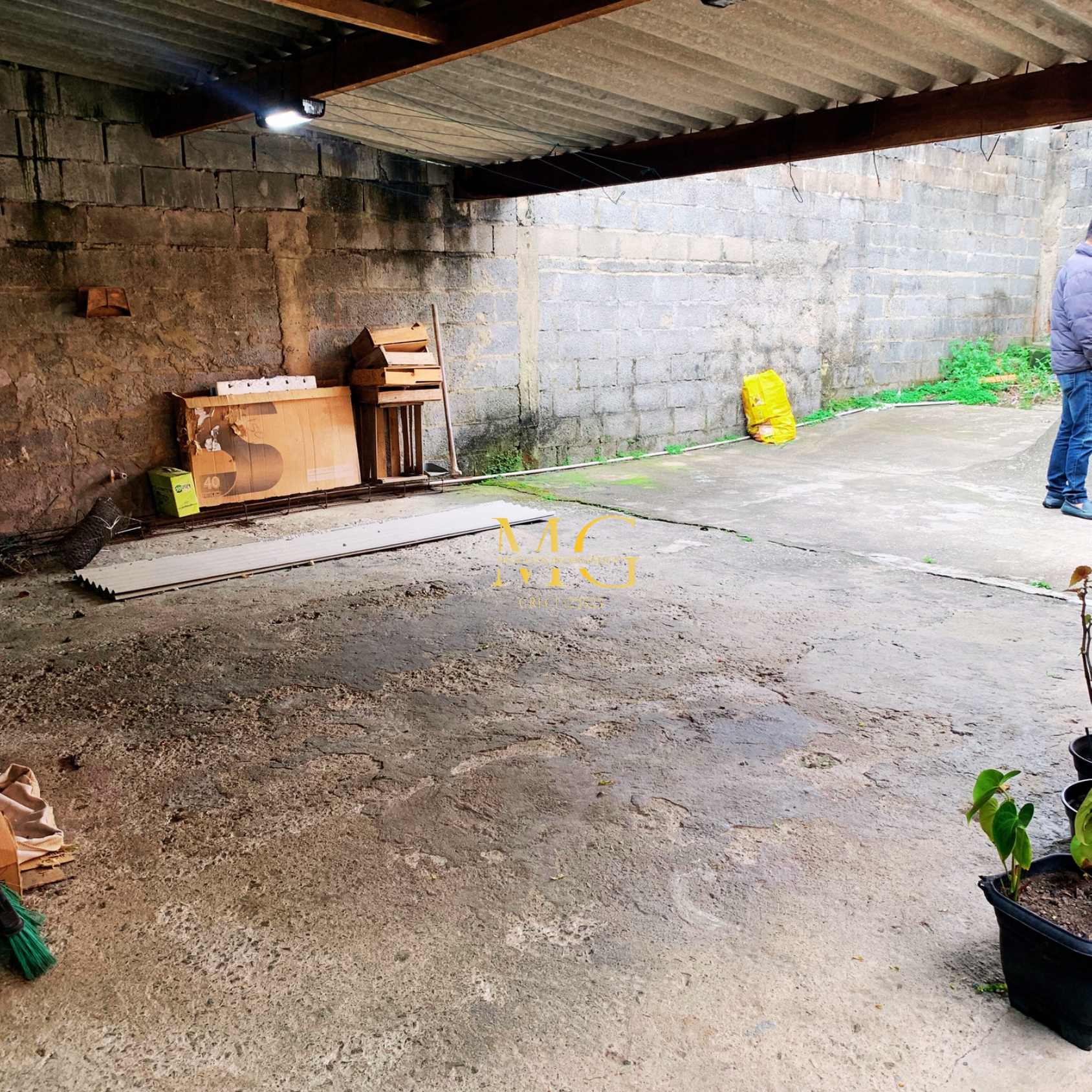 Casa com 2 quartos, cozinha, garagem grande, quintal, água e luz instalados, localizada em rua asfaltada e com documentação em dia.