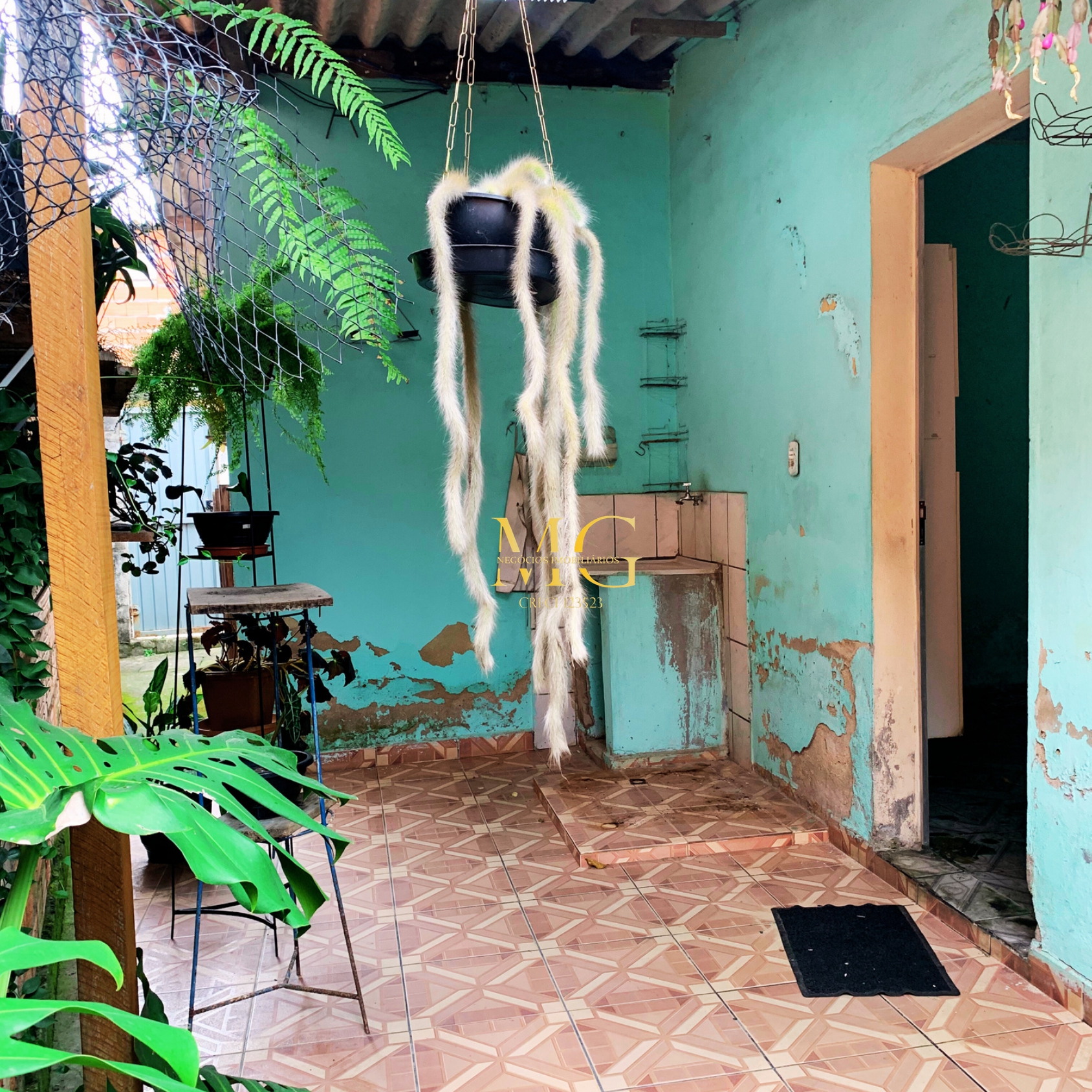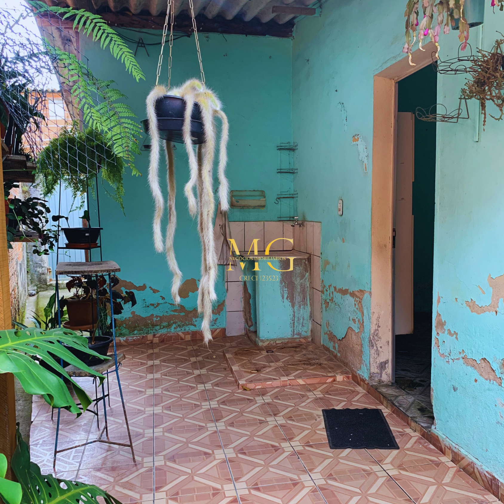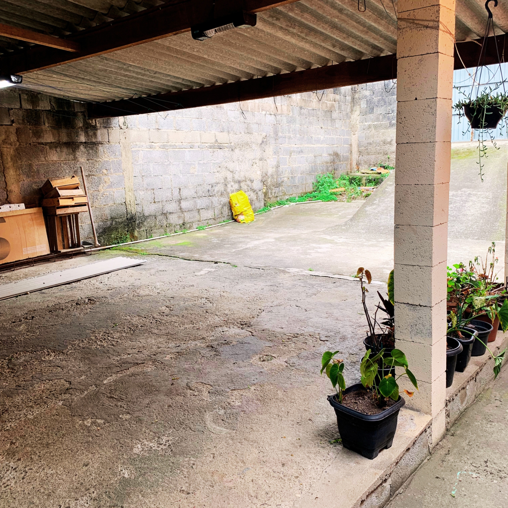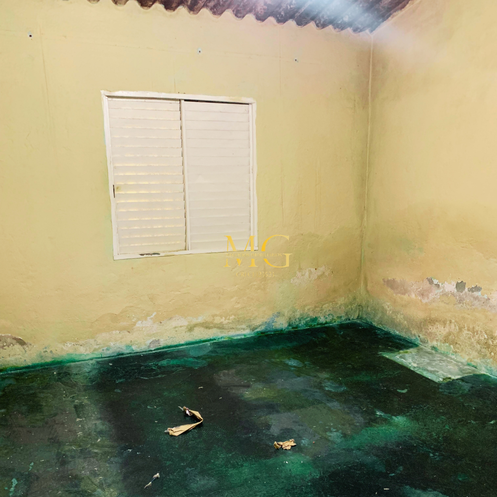 Casa com 2 quartos, cozinha, garagem grande, quintal, água e luz instalados, localizada em rua asfaltada e com documentação em dia.